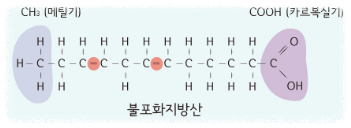 🔵 불포화지방은 탄소와 탄소 사이에 한 개 이상의 이중 결합 또는 삼중 결합이 있는 지방을 말한다.