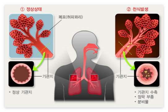 기관지 천식은 기도 과민증과 가역적인 기도폐쇄를 보이는 만성 기도 염증질환이다. 전 세계적인으로 환자가 3억명 가량에 이르는 천식의 증상은 폐 속에 있는 기관지가 좁아져서 호흡곤란, 기침, 천명(쌕쌕거림)등 호흡기 증상이 반복해서 발작적으로 나타낸다. 전 세계적으로 유병률이 증가하고 있고 우리나라에서도 소아 청소년층과 40세 이후 성인까지 유병률이 증가하고 있다. 천식은 치료비 등 호흡기 증상이 반복해서 발작적으로 나타난다.