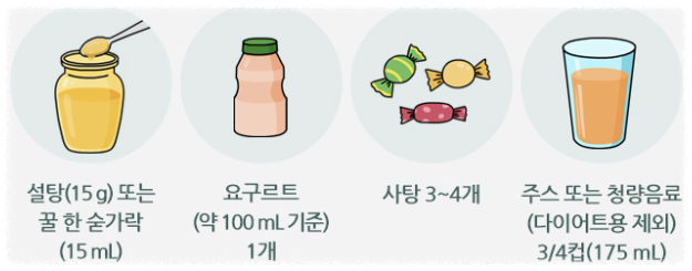 - 회복이 되면 자가혈당측정을 통해 확인하고 간식이나 식사를 하여 추가적인 저혈당 발생을 예방합니다.