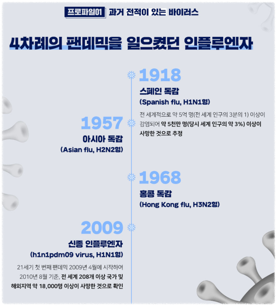 3. 참고로 상위 분류인 인플루엔자 바이러스의 혈청형은 크게 4종(A, B, C, D형)으로 분류된다.